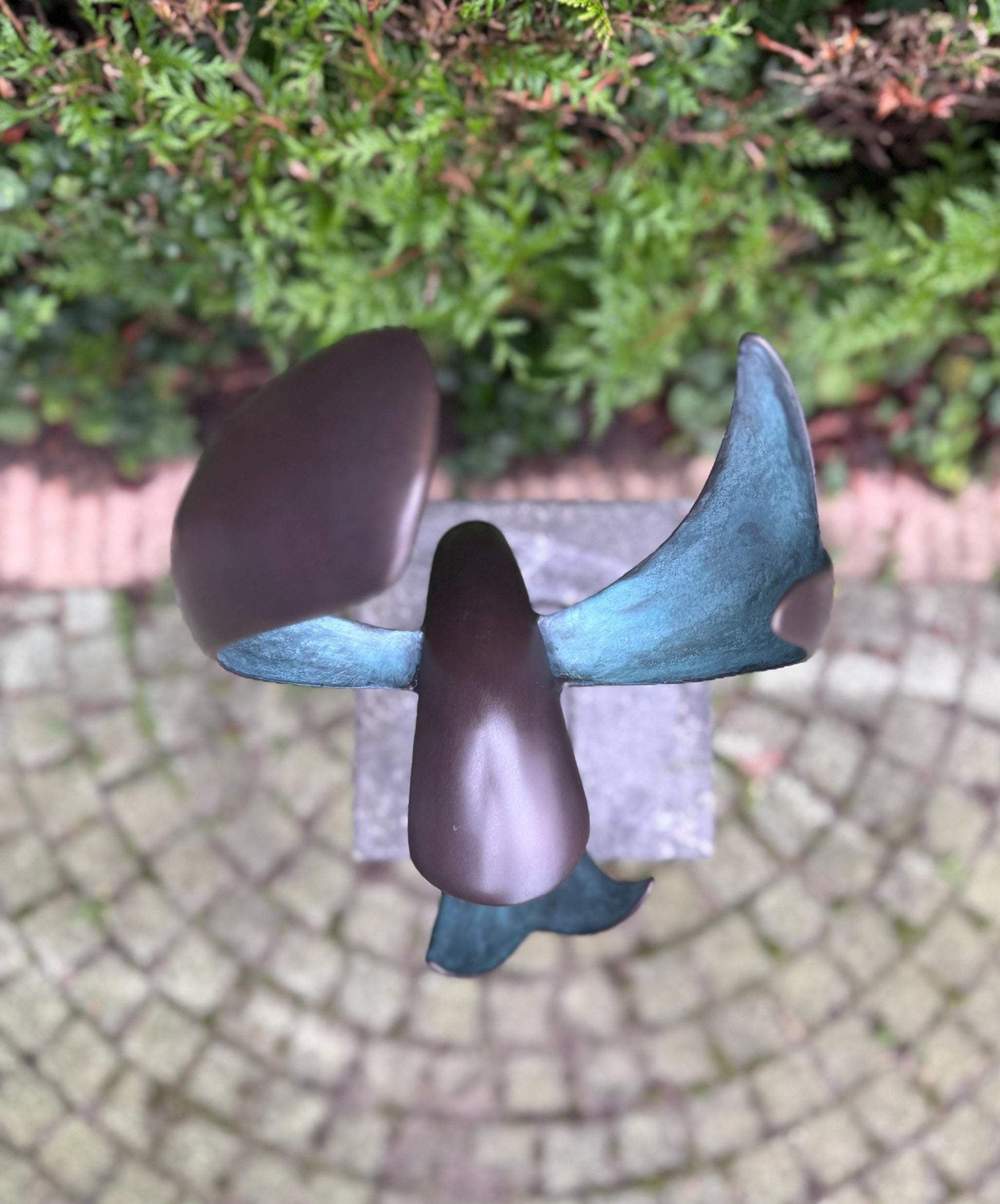 This elegant bronze sculpture evokes the fluid grace of ocean waves in motion, abstractly shaped into three rising forms that swirl around an open center. The combination of smooth, curved lines and contrasting patinas brings a sense of balance, energy, and harmony. Whether placed in a minimalist garden, on a stone pedestal, or as a statement piece indoors, it invites contemplation and adds a sophisticated artistic presence to its surroundings.