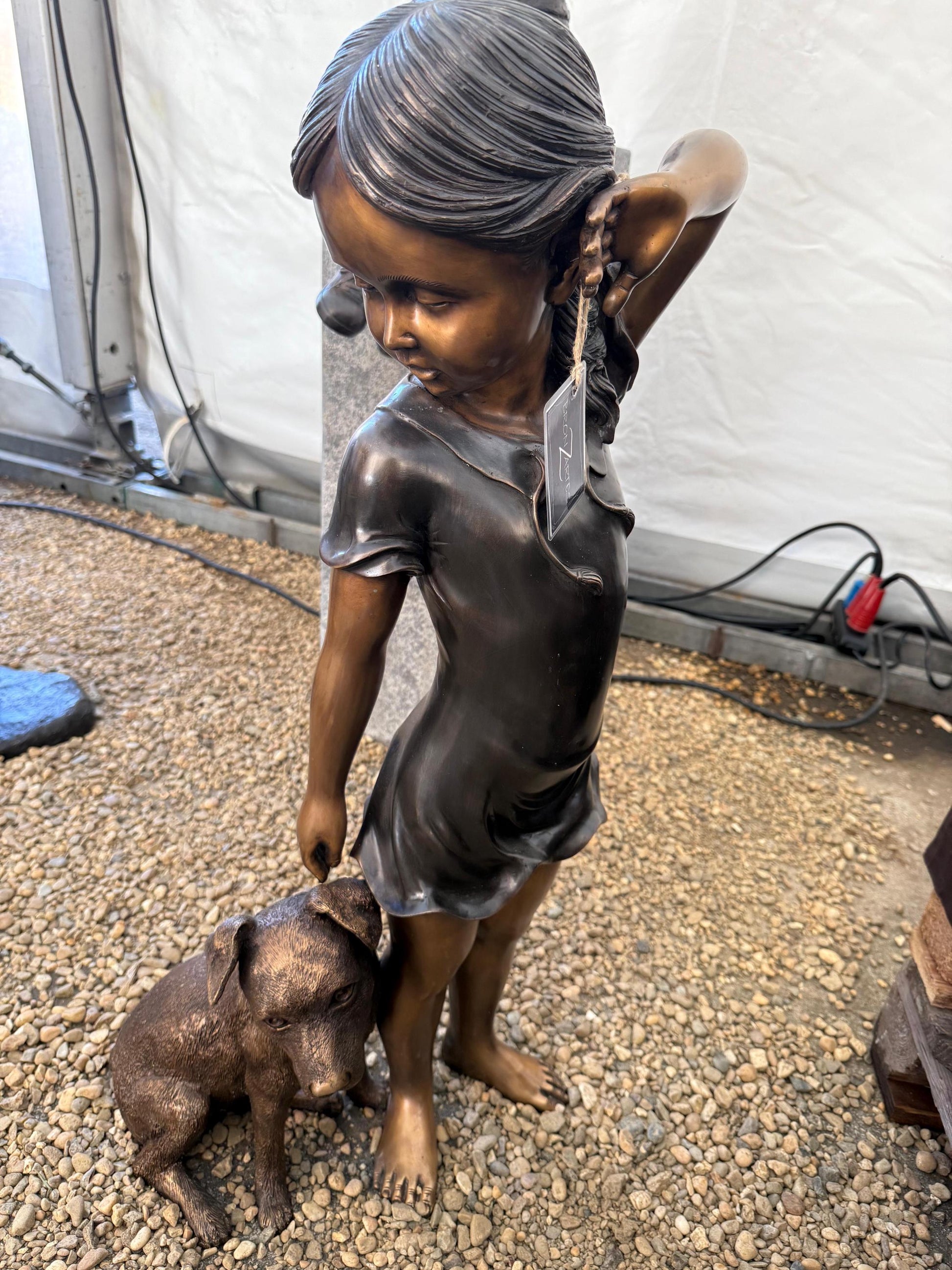 Girl and Dog – Bronze Sculpture. 37x30x88cm